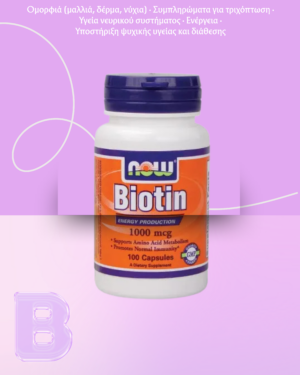 Numer katalogowy: 733739004697NOW Foods Βιοτίνη 1000mcg – 100 φυτικές κάψουλες